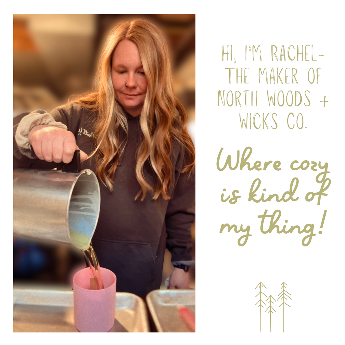 I'm Rachel, the maker behind North Woods & Wicks Co. I'm a Northern Wisconsin girly who's obsessed with candles, home decor and all things COZY!